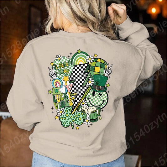 Retro St Patrick's Day Sweatshirt, Saint Satricks Day Pullovers, Lucky Sweatshirts, Long Sleeve Crew Neck Women Sweatshirts